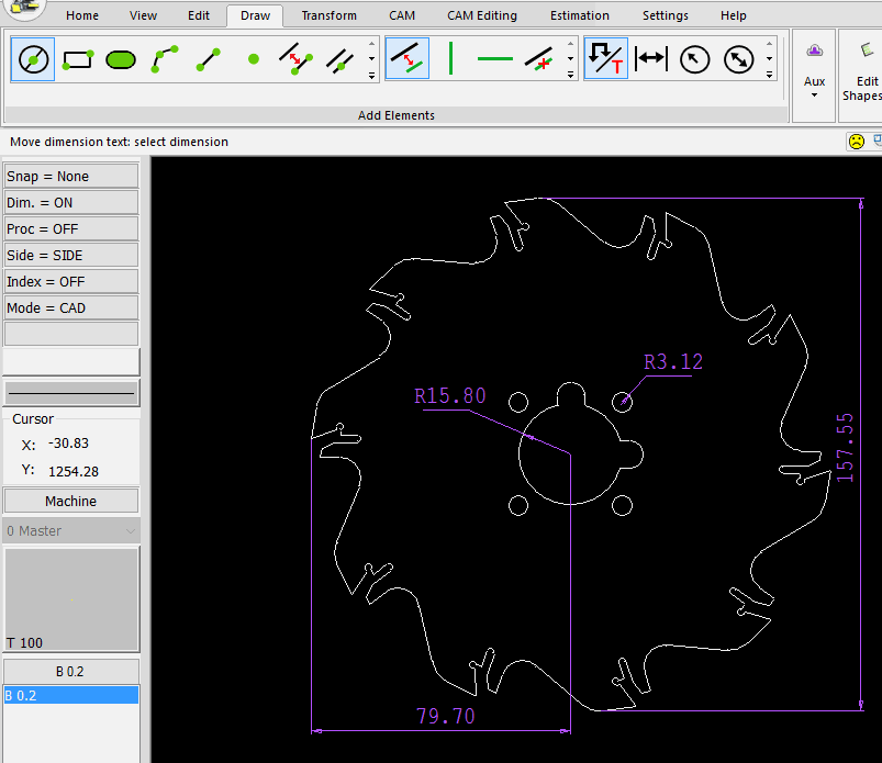 Cnckad has a powerful,easy to use, 2D drafting Module, which provides tools for quickly drawing complex sheet metal parts. Modifications are quick and easy with functions such as stretching, rotation, copy and many more.